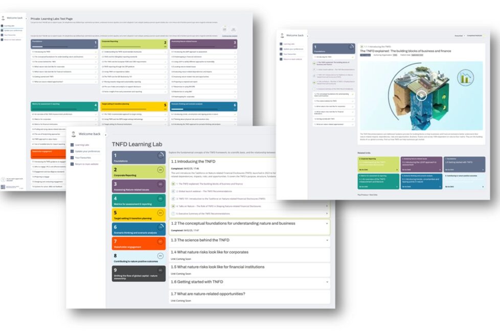 Learning Lab provides a series of nine modules covering all aspects of the TNFD recommendations, and includes videos, case studies, webinars and interactive content, with new materials to be added in the future, aimed at enabling self guided learning to provide understanding of the TNFD recommendations and guidance on nature-related issues.